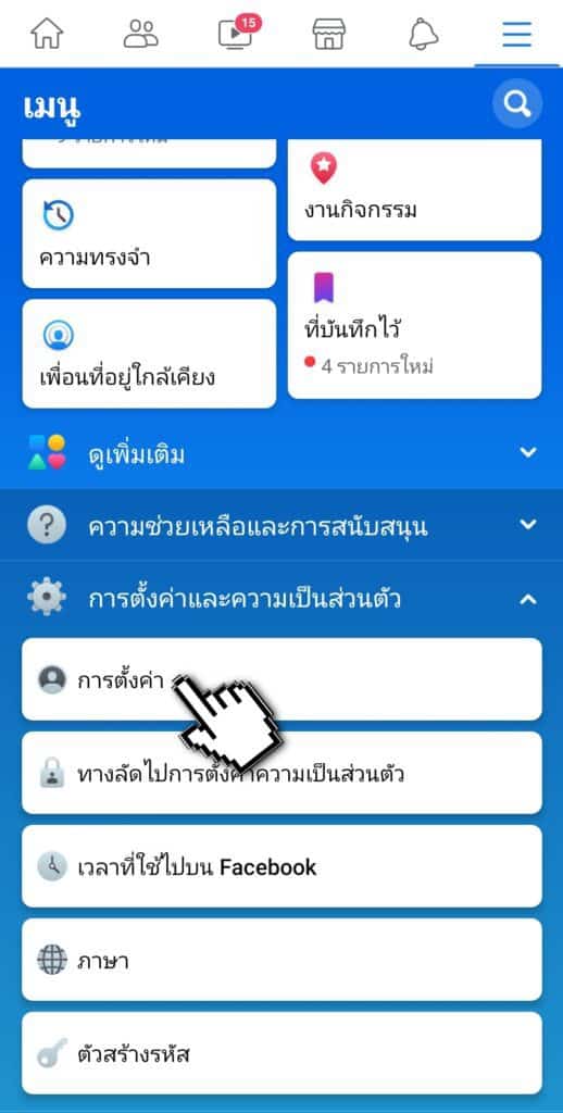- เข้าไปที่ เมนูหลัก ของ facebook