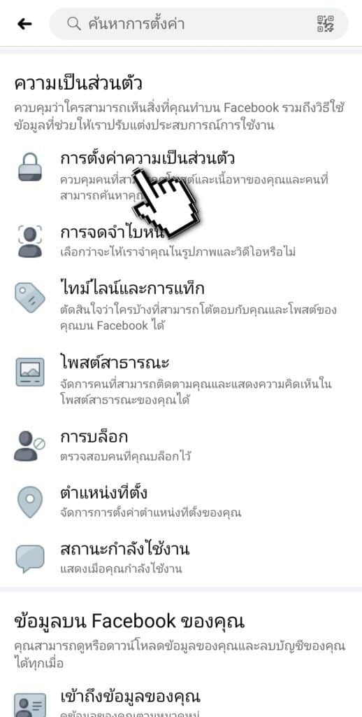 - ไปที่ การตั้งค่าความเป็นส่วนตัว