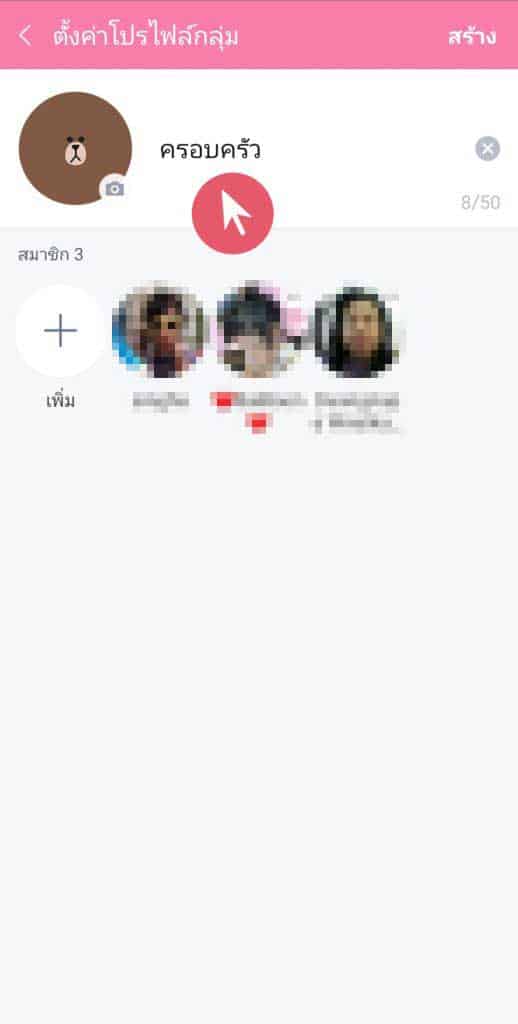 - ถัดมาให้ท่านตั้งชื่อกลุ่มแชท เช่น ตัวอย่างนี้ ตั้งชื่อไลน์กลุ่ม ว่า ครอบครัว เป็นต้น